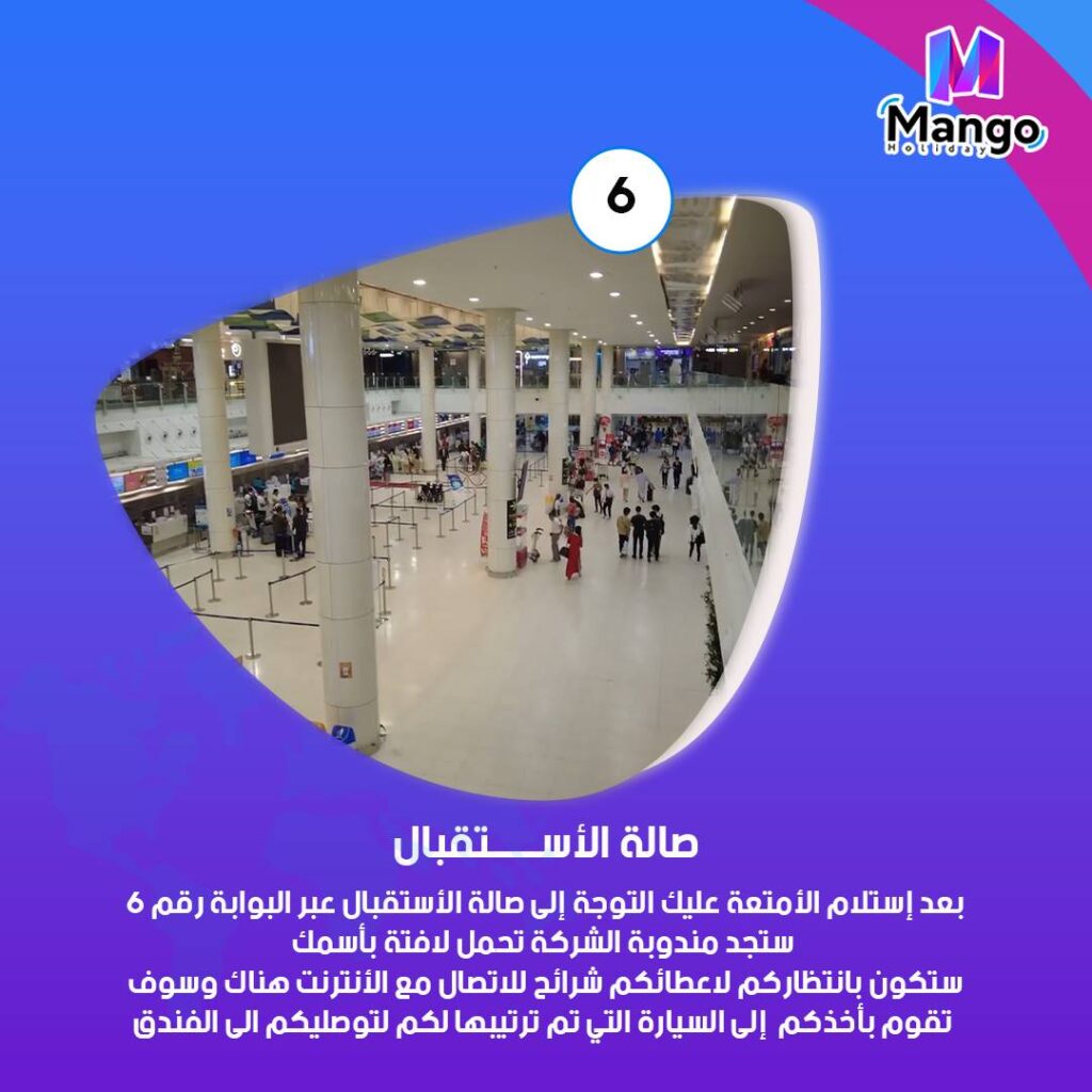 عند الوصول ستكون مندوبتنا بانتظاركم في صالة الاستقبال وهنا سنقوم بشرح الخطوات التي ستمر بها في المطار اثناء الوصول الى المطار الدولي من الخروج من الطائرة حتى الوصول الى صالة الاستقبال .