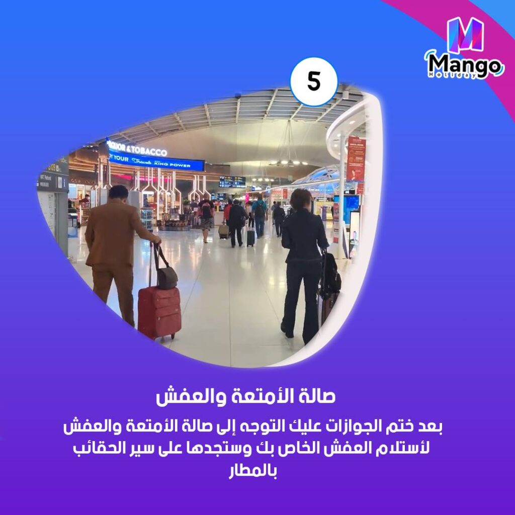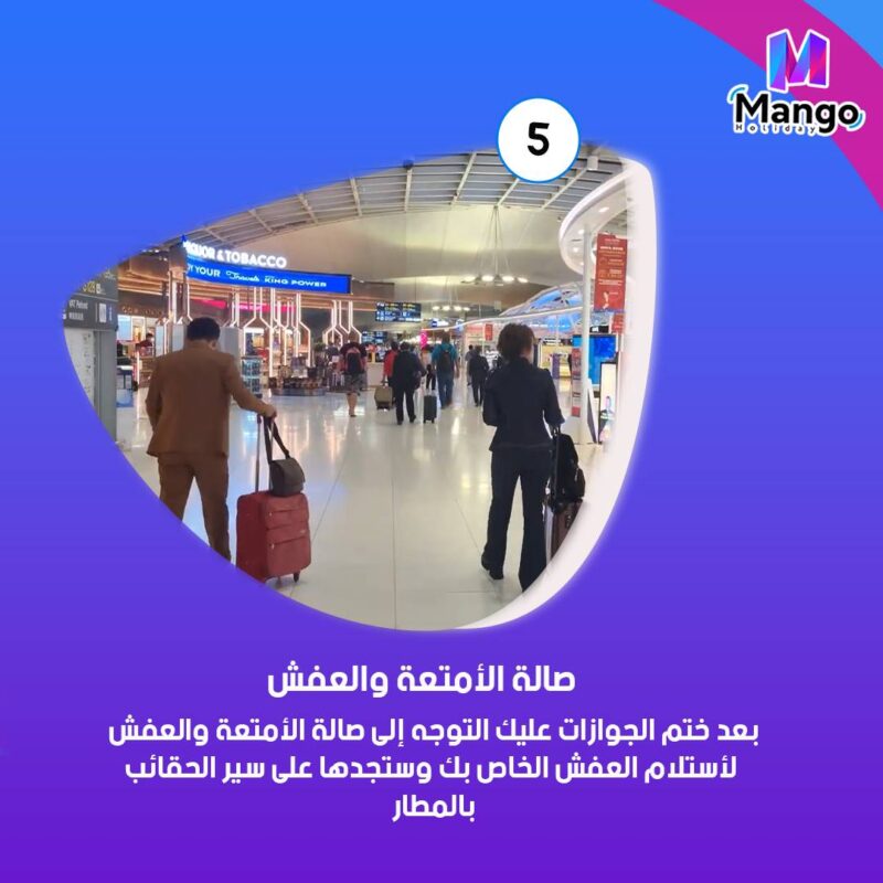 بعد ختم الجوازات عليك التوجه الى صالة الامتعة والعفش لاستلام العفش الخاص بك وستجدها على سير الحقائب بالمطار.