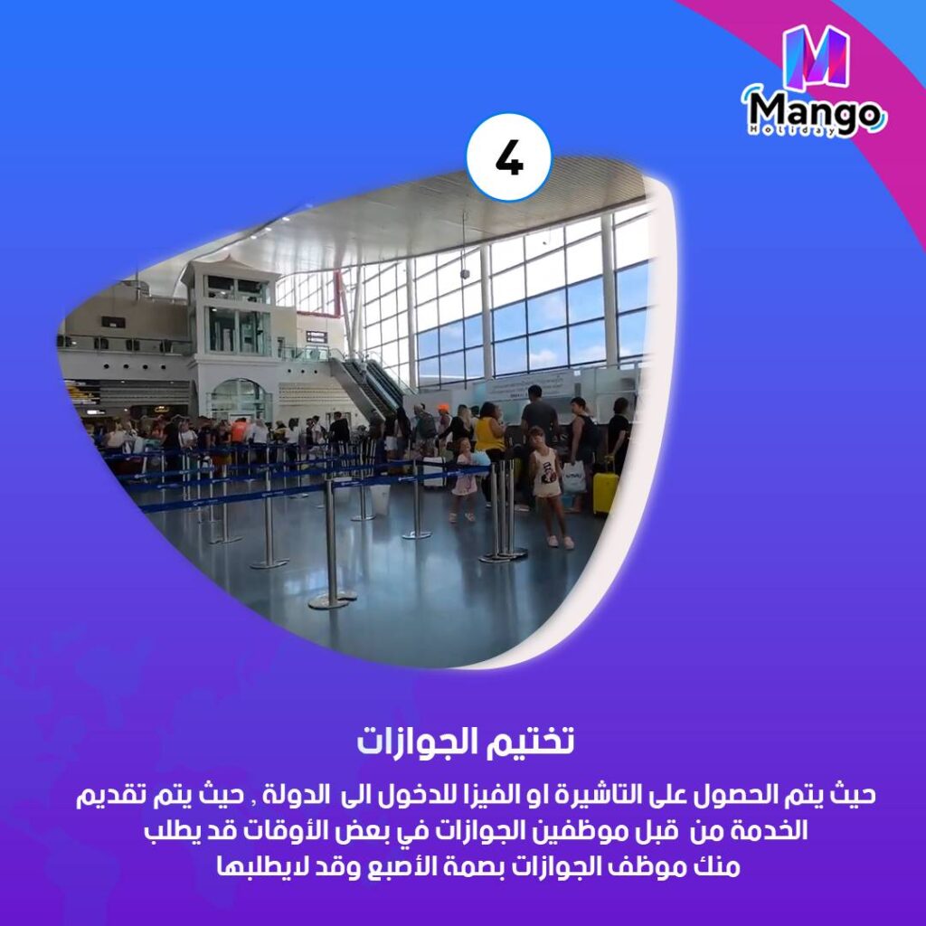 عند وصولك عزيزي الزائر الى المطار الدولي وبعد النزول من سلم الطائرة عبر الممر الخاص للذهاب الى المركز الرئيسي للبوابات.
