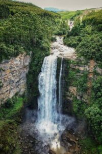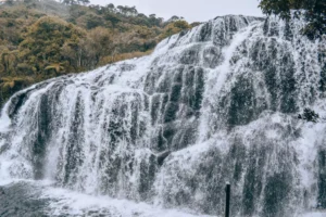 مياه تتدفق من ارتفاع شاهق وسط التلال الخضراء 🌄