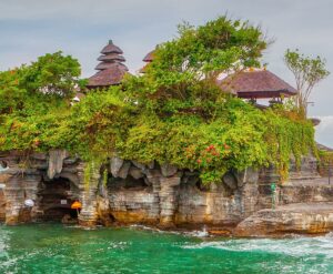 اختتم جولتك بزيارة تاناه لوت، أحد أكثر المعابد شهرة في بالي. يقع المعبد على صخرة فوق البحر، ويوفر منظرًا مذهلاً لغروب الشمس ويعد من أجمل المواقع الدينية في الجزيرة.