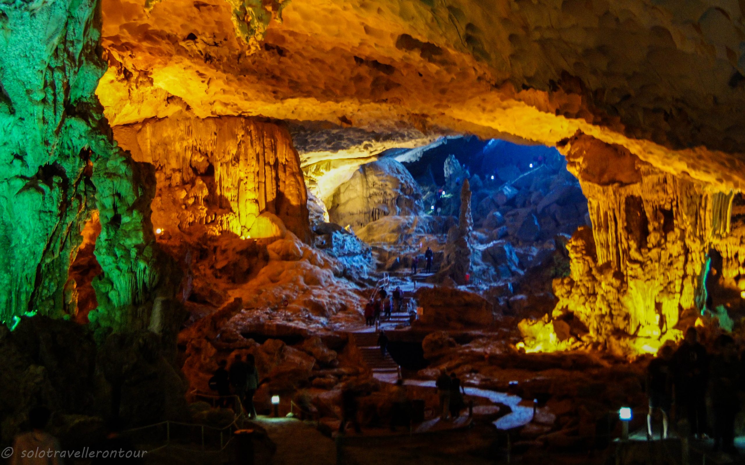 يعتبر كهف سونج سوت من أشهر وأكبر الكهوف في خليج هالونج. يتميز الكهف بممرات واسعة وأعمدة صخرية ضخمة، بالإضافة إلى شكلها الرائع الذي يشبه القاعات الكبرى. يطلق عليه أحيانًا “كهف المفاجآت” بسبب تنوع تشكيلاته الجيولوجية الفريدة، مثل الأعمدة الحجرية الطبيعية والهوابط المدهشة التي تشبه المنحوتات الفنية.