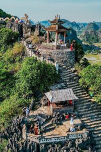 ارتدِ أحذية مريحة واحمل ماءً أثناء الصعود، وادمج الزيارة مع مغارات ترانج آن أو محمية فان لونغ الطبيعية لتجربة طبيعية كاملة في Ninh Binh. 🌄🚶