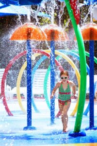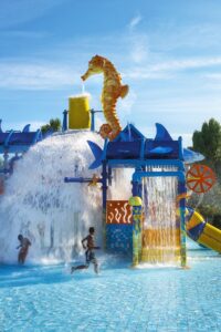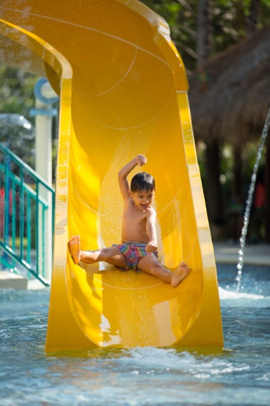منطقة سباحة للأطفال مع منزلقات مائية صغيرة