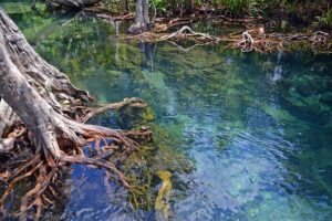 المياه الفيروزية والقنوات المحاطة بغابات المانغروف الكثيفة.