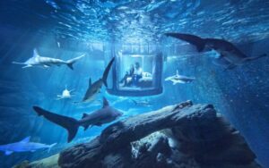 تمشي داخله والأسماك وأسماك القرش والراي تسبح فوق رأسك مباشرة 🦈✨