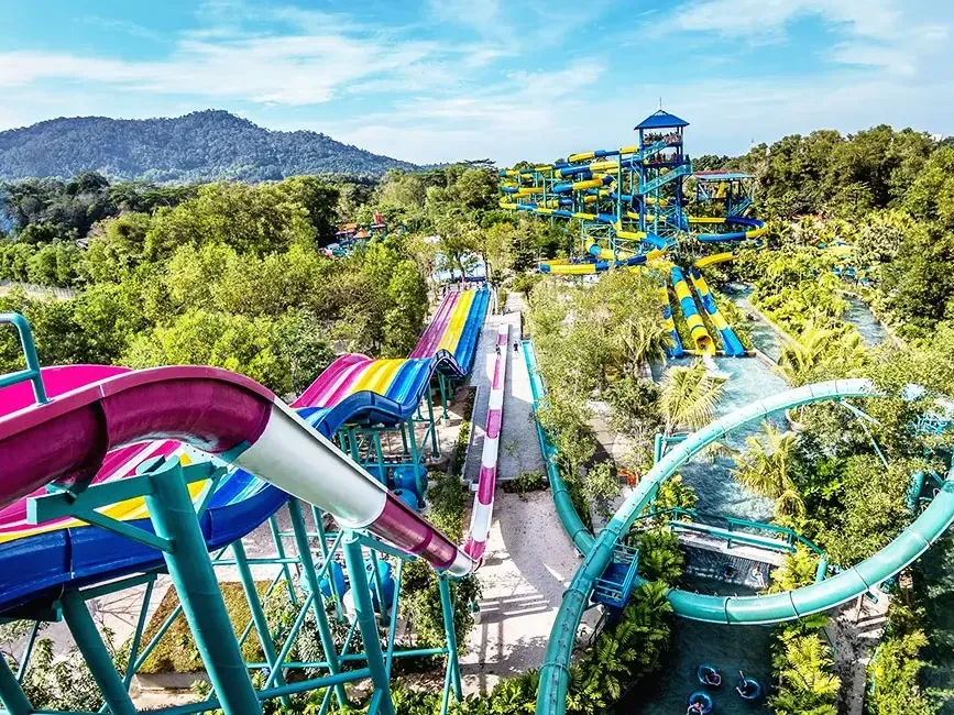 تقع الحديقة المائية new theme park in Malaysia بين الأشجار وذلك ما يخلق أروع المناظر الطبيعية الساحرة والخلابة وتحتوي على العديد من الالعاب المائية المتنوعة مثل الزحاليق الكبيرة والصغيرة وغيرها حيث تُحيط بها الأشجار والنباتات من جميع الاتجاهات بالألعاب الخاصة بالحديقة المائية، ايضاً العاب مائية للأطفال تتواجد بكثرة في الملاهي المائية في ماليزيا حيث تنال على اعجابهم