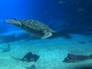 تختتم جولتك بزيارة حوض السمك البحري، أحد أكبر أحواض السمك في العالم. يعرض الحوض أنواعاً عديدة من الكائنات البحرية، بما في ذلك أسماك القرش، والسلاحف البحرية، وأسماك الملائكة. إنه مكان مثالي للاستمتاع بمشاهد بحرية استثنائية.
