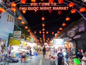 يُعد السوق الليلي في فوكوك من أشهر الأماكن السياحية في الجزيرة، حيث يجتمع الطعام الشهي، التسوق، والعروض الشعبية في أجواء نابضة بالحياة. ✨