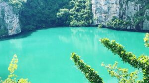 بحيرة الزمرد الشهيرة (Emerald Lake): بحيرة مالحة داخل جزيرة محاطة بالجبال، مشهد طبيعي فريد يخطف الأنفاس.