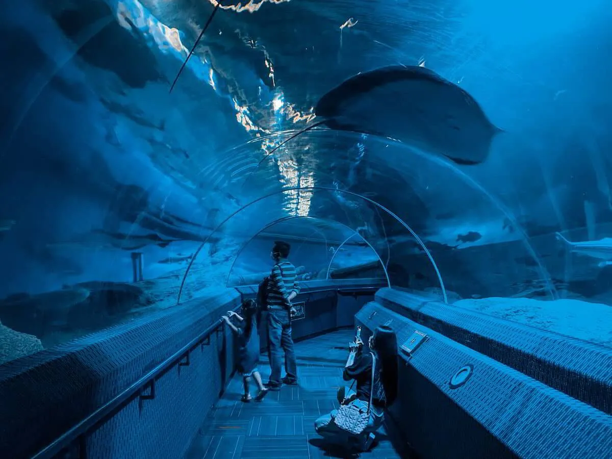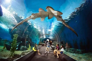 ثم يتم التوجه إلى عالم تحت الماء، وهو أحد أكبر الأحواض المائية في المنطقة، حيث يمكن للزوار استكشاف الحياة البحرية عن كثب، من الأسماك الاستوائية إلى أسماك القرش، من خلال الأكواريوم الضخم.