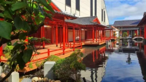 يمكنك تجربة أطعمة يابانية وآسيوية في مناطق الطعام داخل الحديقة مثل: