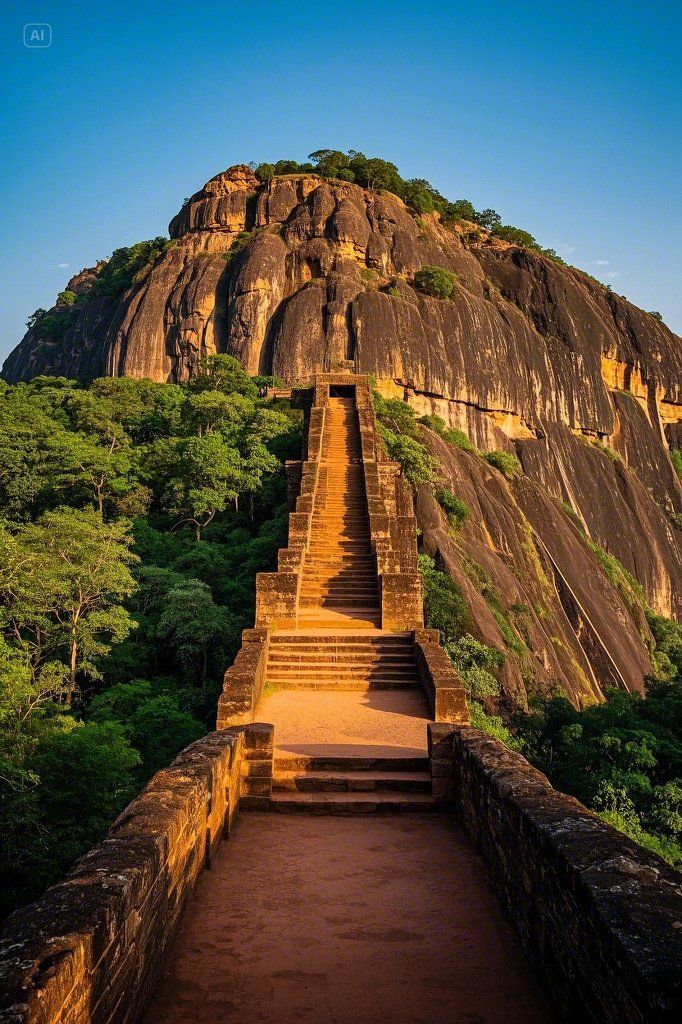 واحدة من أعظم عجائب سريلانكا التاريخية والطبيعية: صخرة سيجيريا. 🏞️🗿