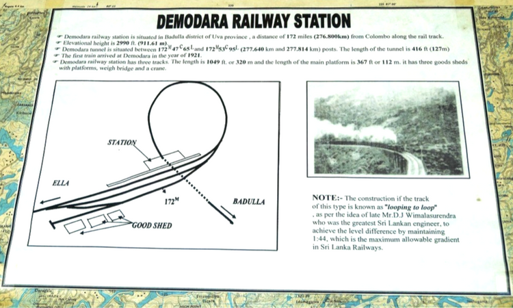 تم إنشاء حلقة ديمودارا خلال الحقبة الاستعمارية البريطانية لتسهيل مرور القطار عبر التلال الشاهقة في منطقة إيلا.
