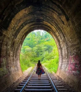 الوصول إلى الجسر يتضمن مسارًا قصيرًا بين الغابات ومزارع الشاي، ما يجعل الرحلة ممتعة ومليئة بالمناظر الطبيعية.