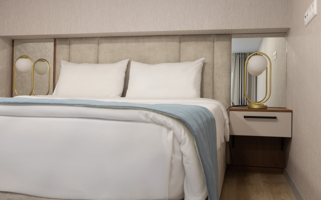 التصميم: غرف عصرية وأنيقة بلمسات فنية تجمع بين الخطوط البسيطة والتفاصيل الغنية، مع مفروشات مريحة وأسرّة فاخرة.