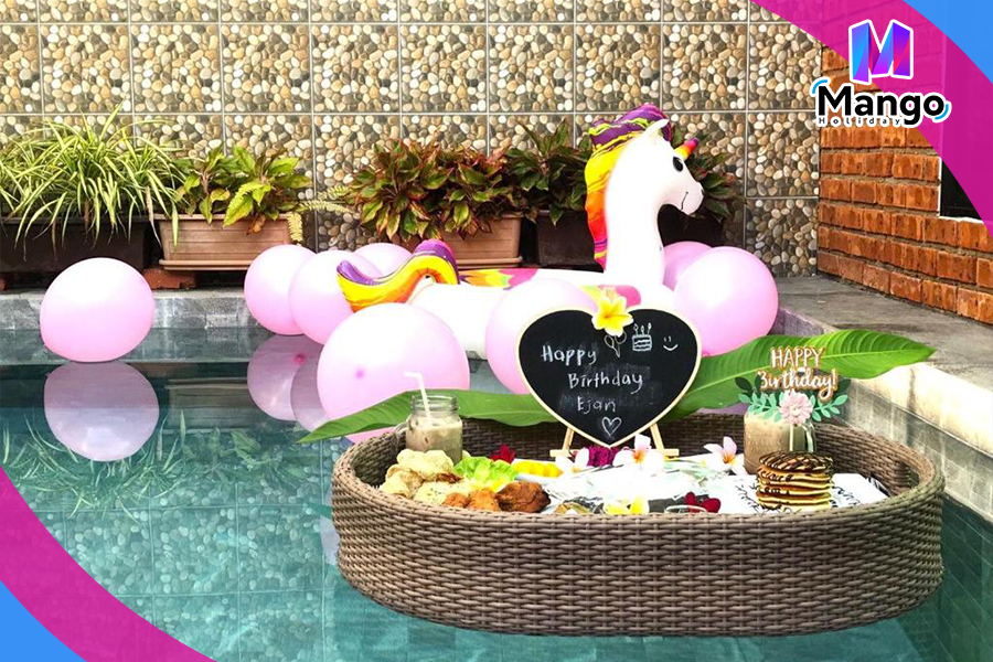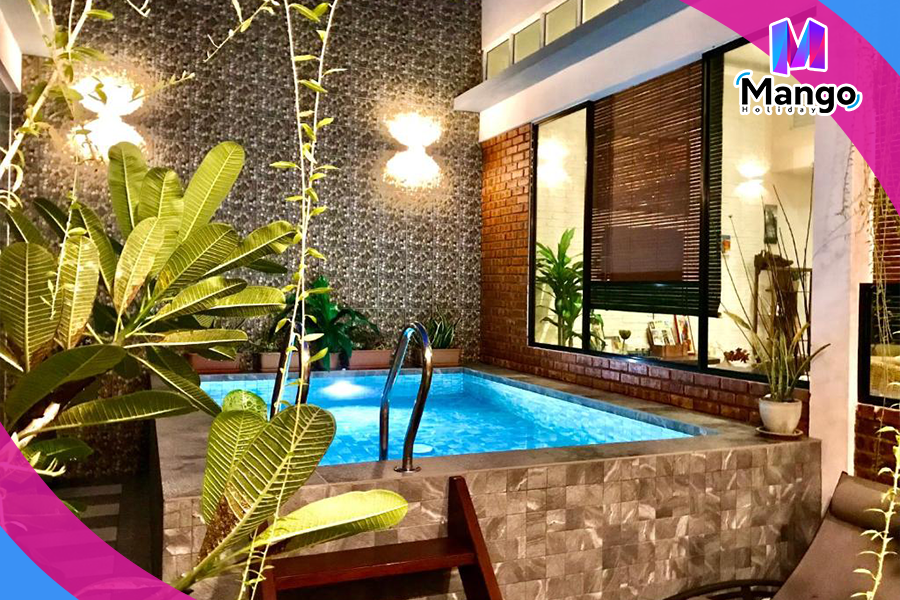 مسبح خاص مُحاط بحديقة استوائية غناءة.