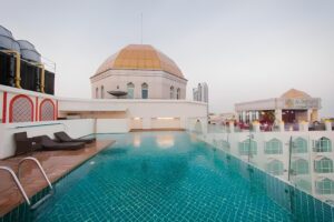 تتميز جميع غرف الفندق الواسعة بإطلالات رائعة على أفق بانكوك، وهي مصممة بأناقة مستوحاة من الطراز العربي. تحتوي كل غرفة على تكييف هواء وتلفزيون بشاشة مسطحة ومنطقة جلوس وثلاجة صغيرة. يضم الحمام الخاص حوض استحمام ولوازم استحمام فاخرة. كما تتوفر سجادة صلاة في الغرف. يتوفر في الفندق مصلى مشترك منفصل للرجال والنساء.