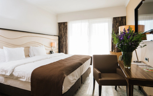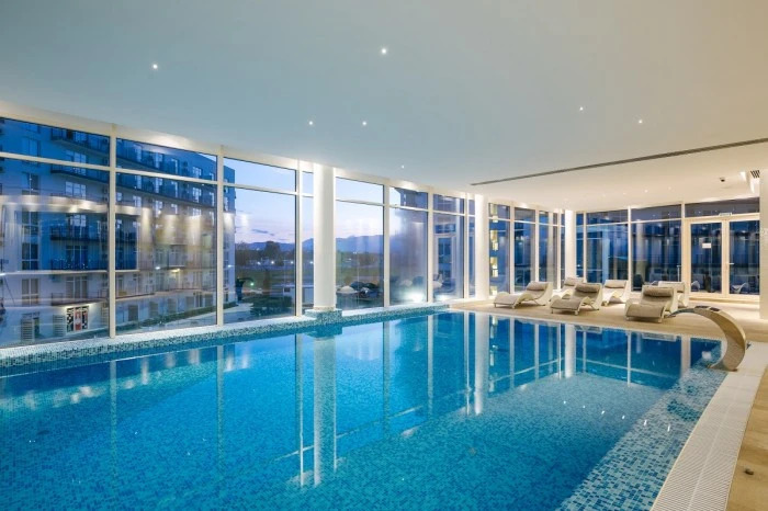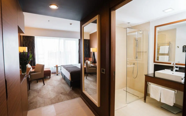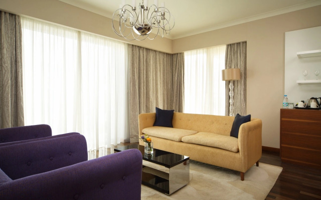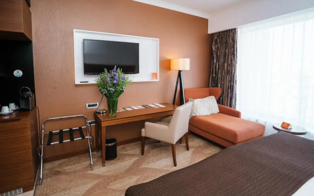 المرافق: مسبح خارجي كبير ومدفأ، مركز لياقة بدنية، منتجع صحي (سبا)، مطاعم، بار، خدمة استقبال على مدار الساعة، وخدمة الواي فاي المجانية.