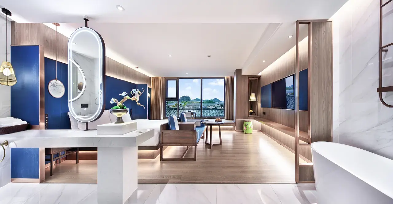 يتميز الفندق بموقعه المريح، حيث يبعد 3 كيلومترات فقط عن محطة قطار غويلين و30 كيلومترًا عن مطار غويلين ليانغجيانغ الدولي. يسهل على النزلاء الاستمتاع بالأنشطة المتنوعة، حيث يقع كل من نهران وأربع بحيرات، وزقاق الشرق والغرب، وشارع تشنغيانغ للمشاة على مقربة منه.
