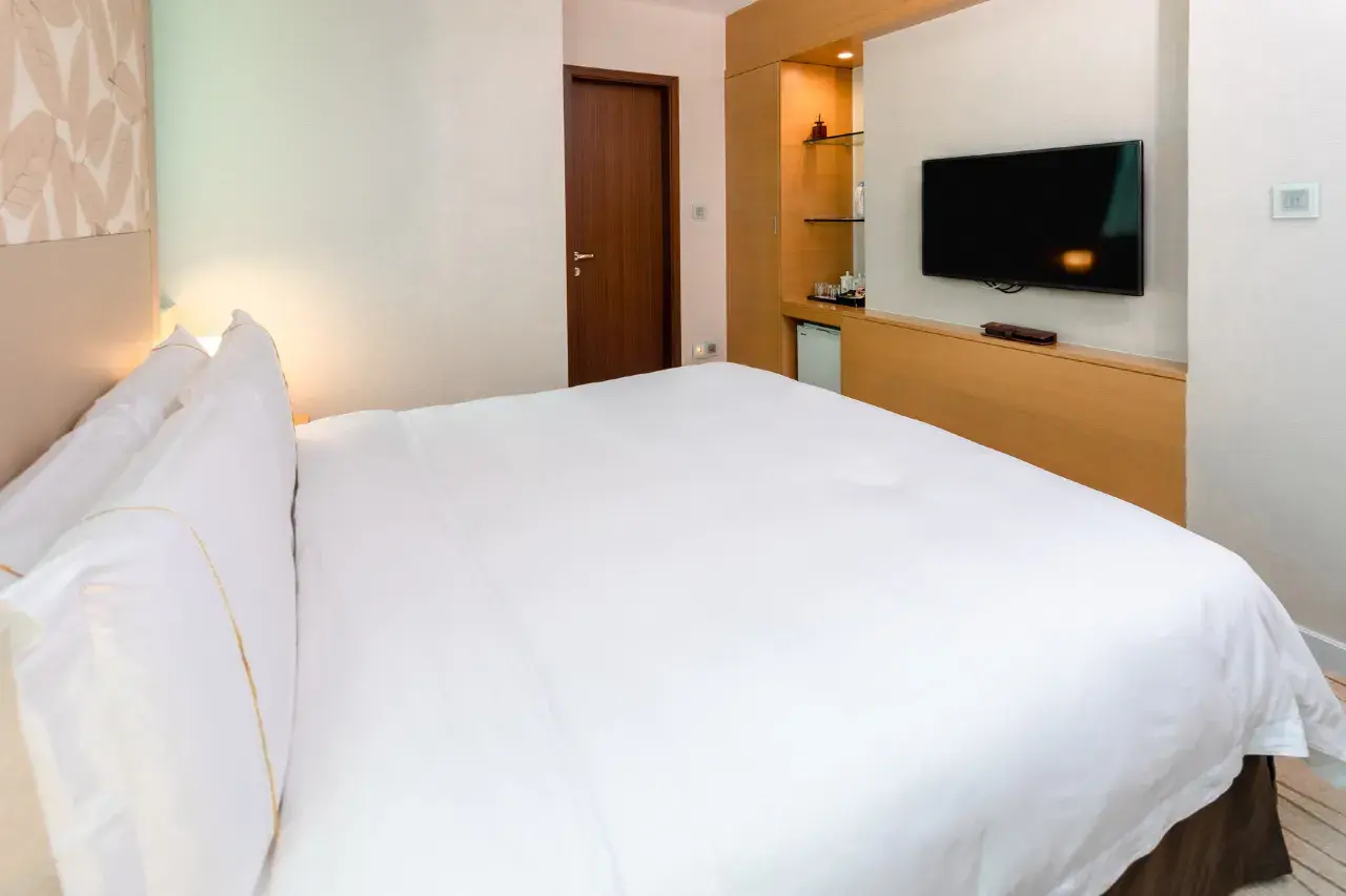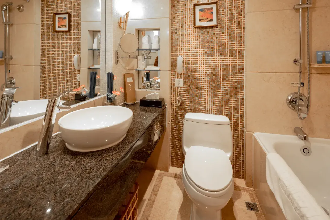 تتميز الغرف المكيفة بتصميمات داخلية كلاسيكية بظلال محايدة، وتحتوي على خزنة وآلة لصنع الشاي/القهوة وميني بار، وتشتمل الحمامات الخاصة على حوض استحمام ومجفف شعر.