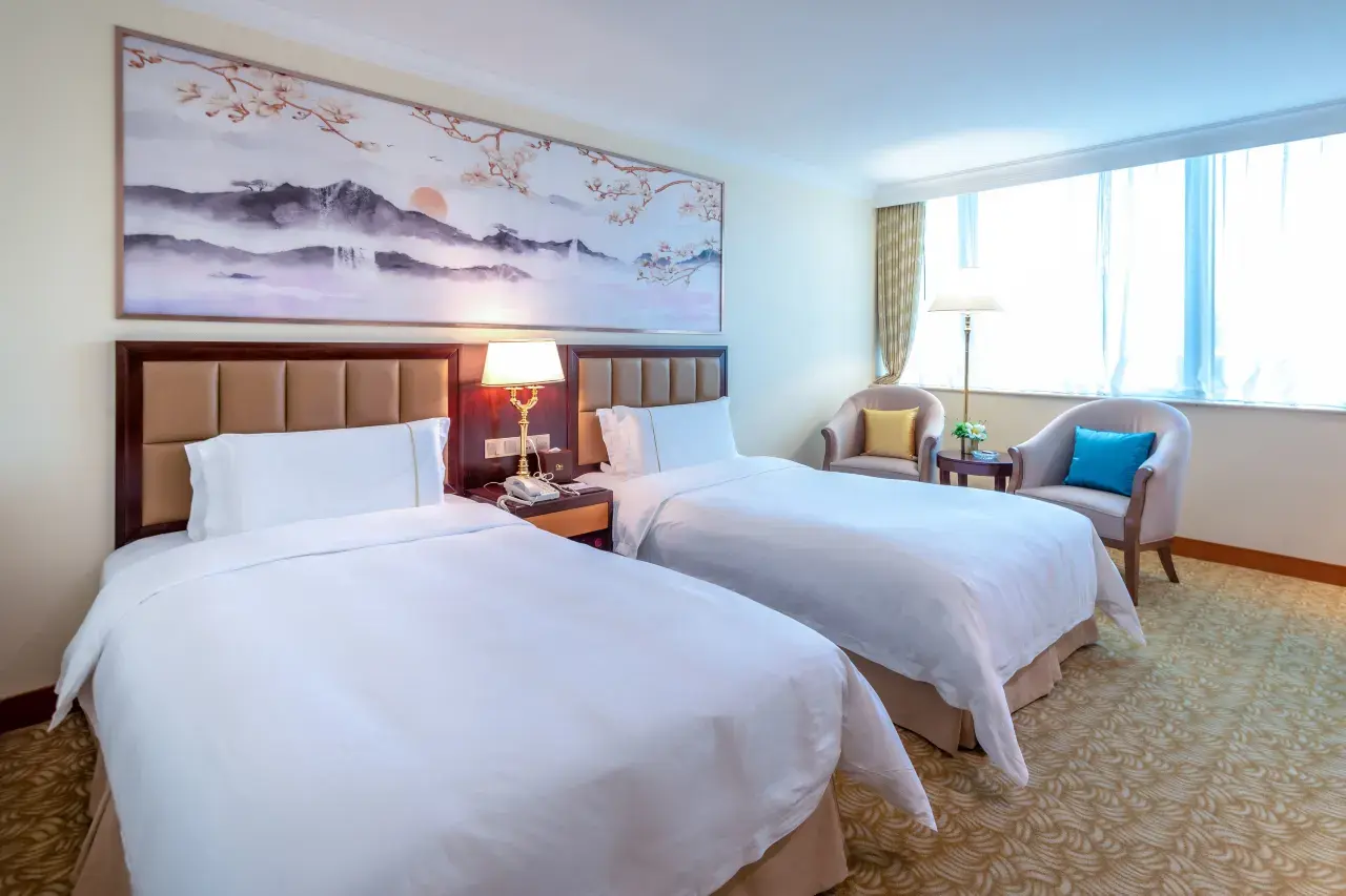 يُمكن للضيوف الاستمتاع بالوجبات الصينية والغربية الشهية في المطعمين، كما يُمكن تقديم الوجبات في الغرف.