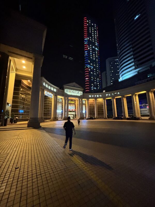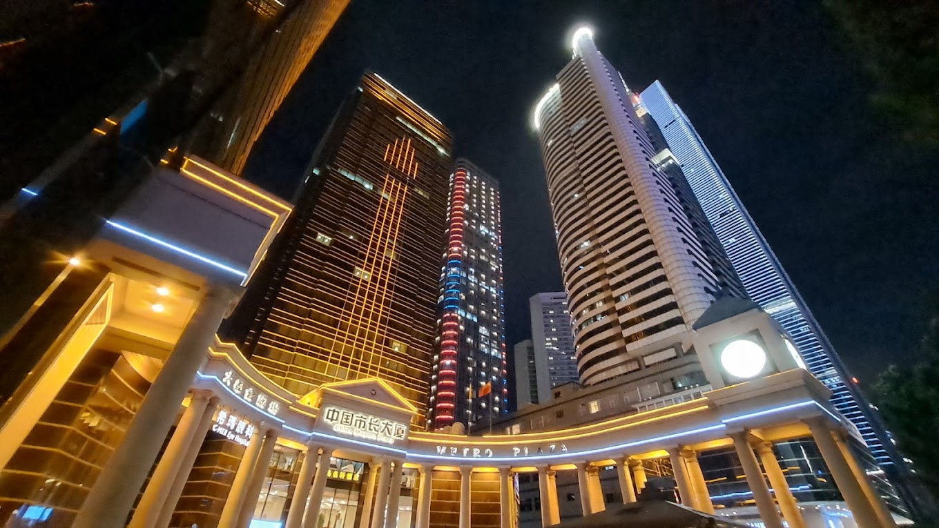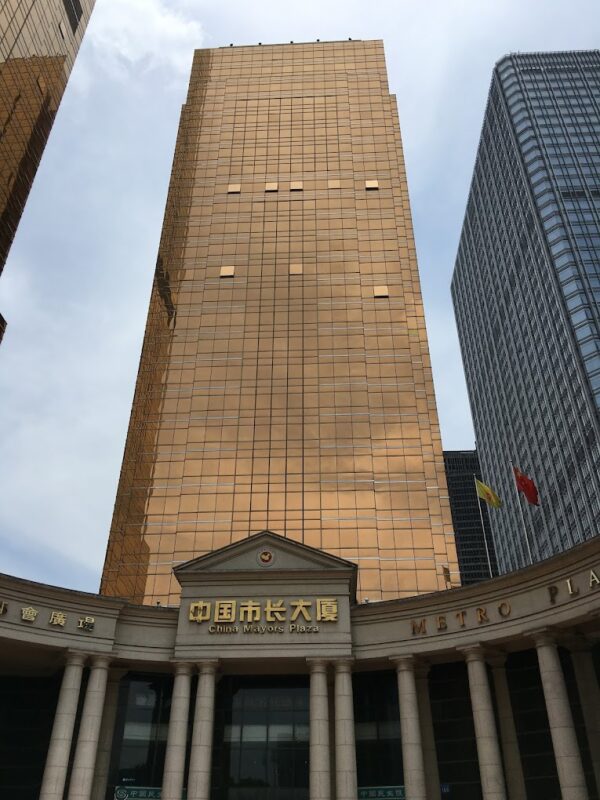 يقع الصين مايورز بلازا في مبنى ذهبي شاهق في حي تيانهه، ويشتمل على غرف مكيفة مزودة بتلفزيون مع قنوات الكابل، ويوفر خدمة الإنترنت السلكية مجانًا، ويبعُد مسافة 3 دقائق سيرًا على الأقدام