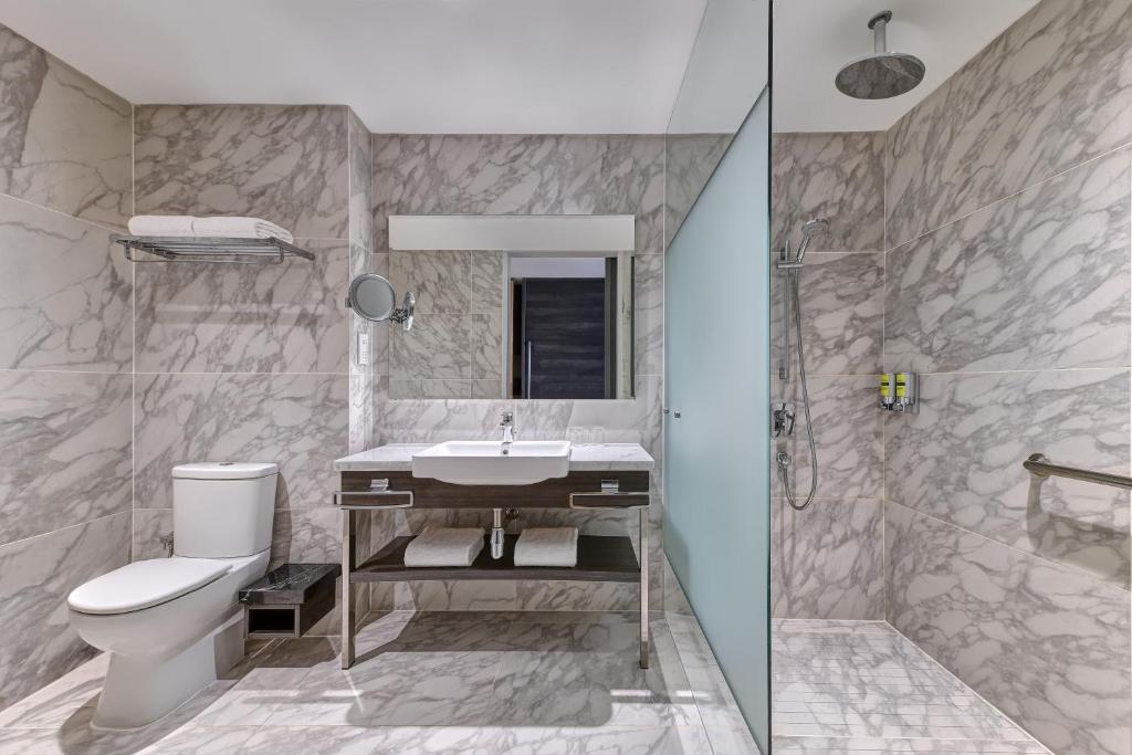 حافظ على نمط حياة متوازن أثناء تنقلك في مركز موشن للياقة البدنية المفتوح على مدار الساعة، أو استمتع بجلسة استرخاء في المنتجع الصحي، أو انغمس في مياه المسبح الداخلي المالح الطبيعي بالكامل.