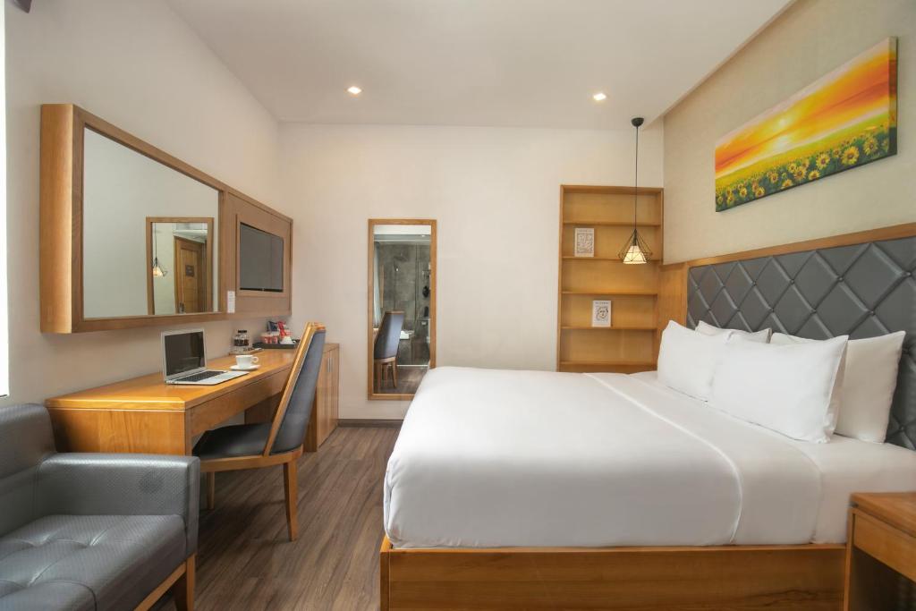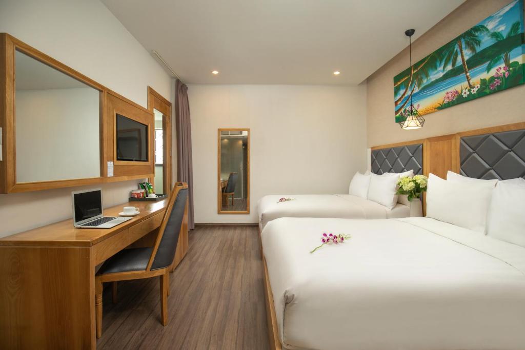 أماكن إقامة مريحة: يوفر فندق بوتيك جراند صن رايز في دا نانج غرفًا عائلية مع إطلالات على البحر أو الجبال. تشتمل كل غرفة على تكييف هواء وحمام خاص وخدمة واي فاي مجانية.
