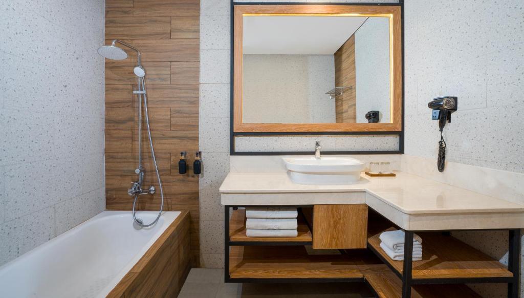 مرافق استثنائية: يمكن للضيوف الاستمتاع بمرافق السبا، ومسبح بإطلالة خلابة، وساونا، ومركز لياقة بدنية، وتراس شمسي، وحدائق غنّاء. تشمل المرافق الإضافية غرفة بخار، وباقات صحية، ومسبح للأطفال، تناسب جميع الأعمار.