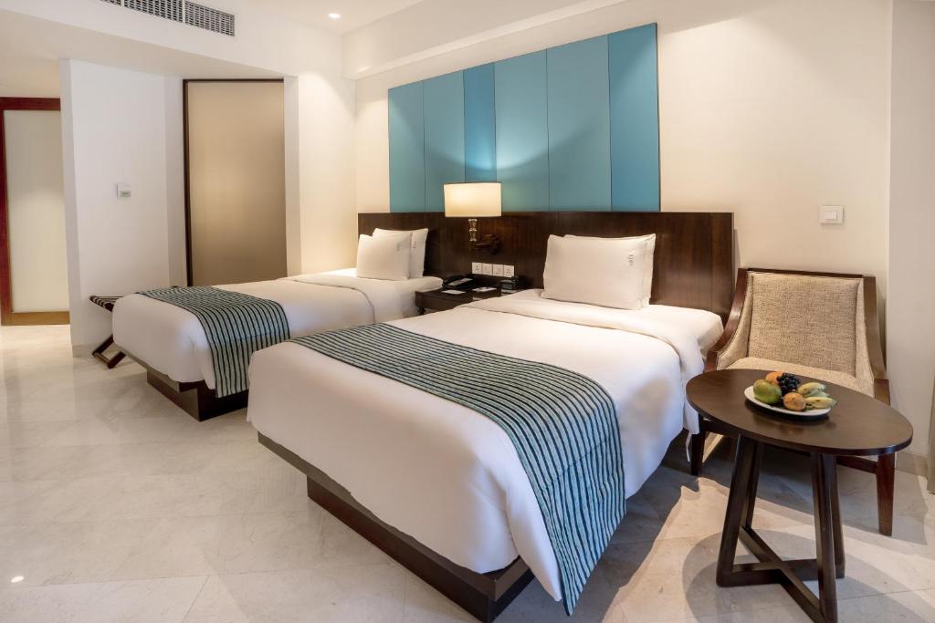 تحتوي الغرف المكيفة على تلفزيون بشاشة مسطحة وصندوق ودائع آمن، وتضم بعض الغرف منطقة جلوس للاسترخاء بها بعد قضاء يوم حافل، كما يمكن للضيوف الاستمتاع بكأس من الشاي أثناء التمتع بإطلالة على البحر أو المسبح، فيما توفر الشرفة إطلالات مذهلة على شروق الشمس، وتحتوي الغرف على حمام خاص مع بيديت ودش وأردية حمام ونعال، كما تشمل المزايا الإضافية لوازم استحمام مجانية ومجفف للشعر.