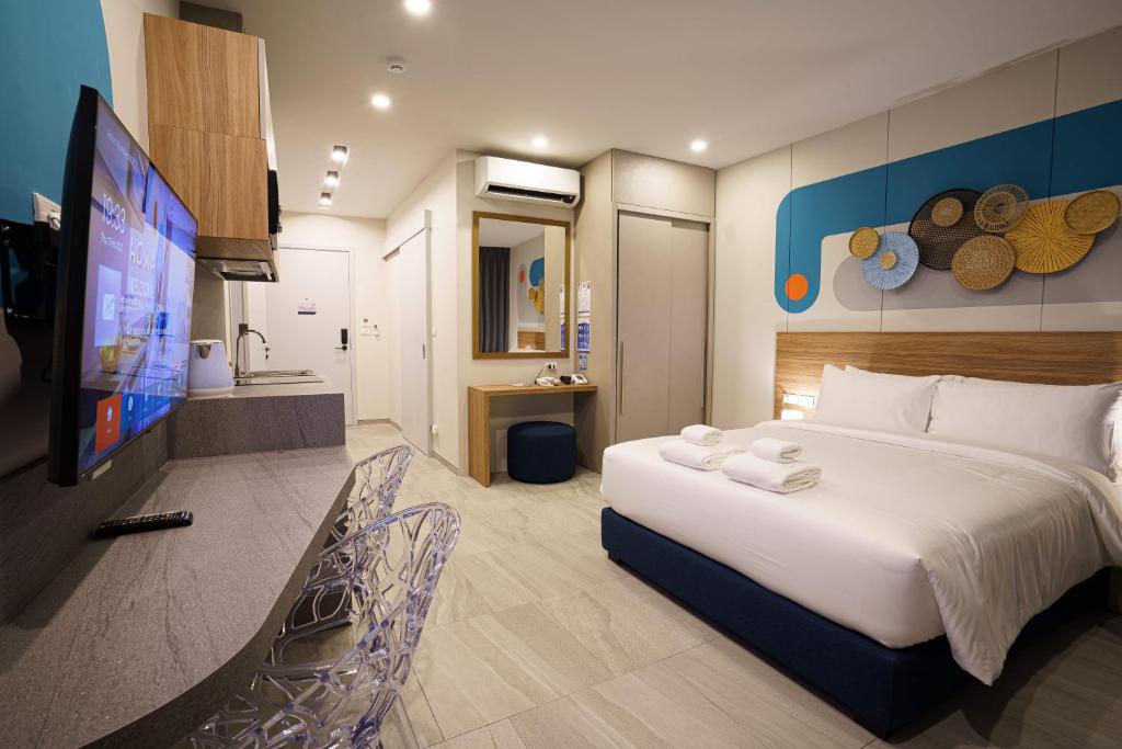 إقامة مريحة: يوفر فندق هوما فوكيت تاون في مدينة فوكيت غرفًا عائلية مكيفة الهواء، مع حمامات خاصة ووسائل راحة عصرية. تحتوي كل غرفة على مطبخ صغير، ومكتب عمل، وخدمة واي فاي مجانية، لضمان إقامة ممتعة.