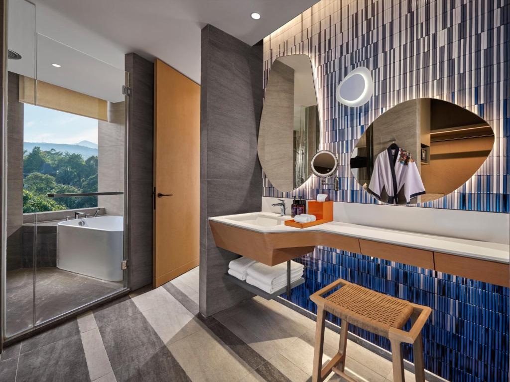 مرافق استثنائية: يستمتع النزلاء بمسبح لا متناهي، ومركز لياقة بدنية، وحديقة غنّاء. يضم الفندق مطعمًا مناسبًا للعائلات يقدم المأكولات الصينية والإندونيسية والأمريكية والإيطالية والعالمية. تشمل المرافق الإضافية بارًا، ومسبحًا للأطفال، وخدمة واي فاي مجانية في المناطق العامة.