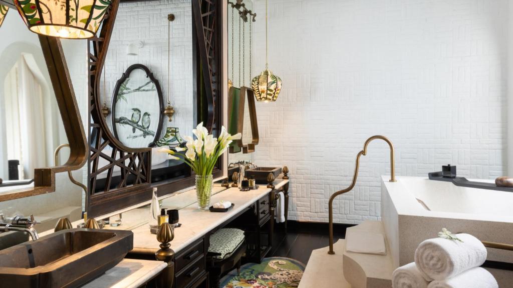 تصميم مبتكر: تتجلى براعة المهندس المعماري بيل بنسلي في كل غرفة من غرف الضيوف وفي المساحات العامة. تطل الشرفات الخاصة على مناظر بانورامية خلابة للبحر، بينما تتميز الفيلات المطلة على الشاطئ بمسابح لا متناهية، وشرفات للتشمس، وحمامات أنيقة على طراز المنتجعات الصحية.