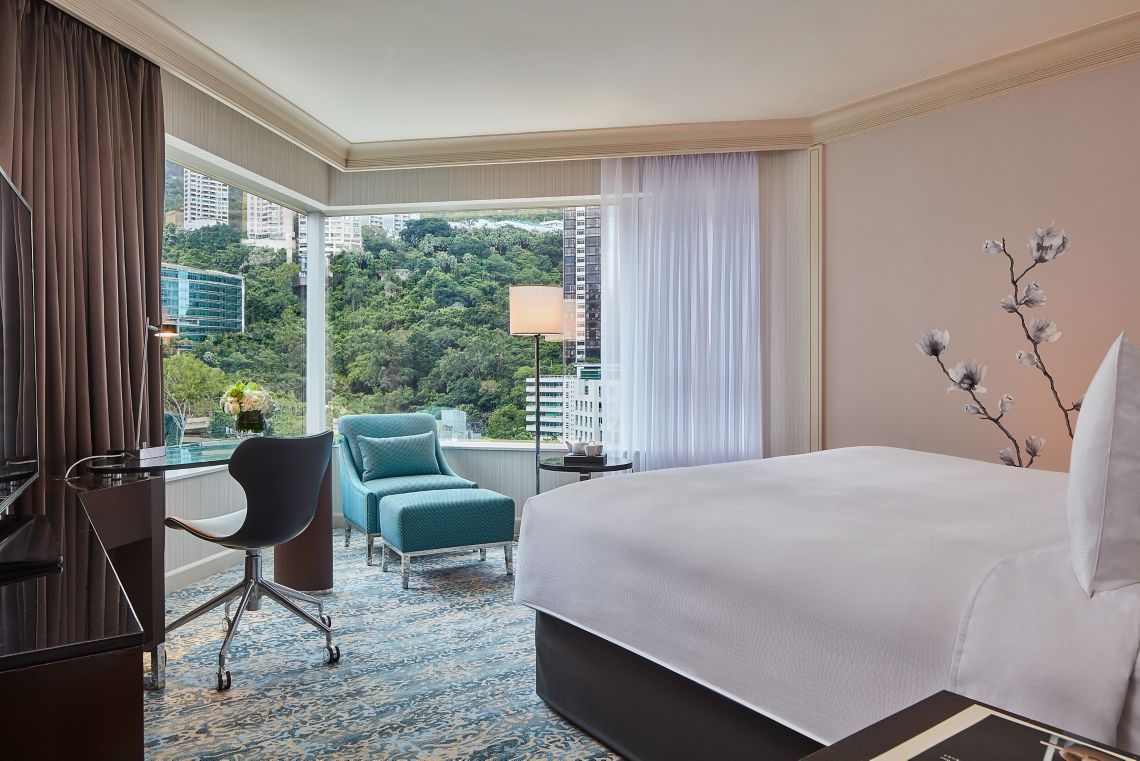 تشمل الغُرف نوافذ كبيرة حيث توفر إطلالات جميلة عَلى مدينة هونغ كونغ أو مرفأ فيكتوريا أو الجبال القريبة، كما تم تجهيز جميع الغرف بمراتب من 7 طبقات مصممة بشكل حصري للنوم ليلاً بشكل مثالي ووسادة من اختيار الضيوف وآلة القهوة عالية الجودة مع كبسولات مجانية ونظام ترفيه ذكي، ويحتوي الحمام الرخامي الأنيق على حوض استحمام ومقصورة دش منفصلة تكملها أردية حمام ولوازم استحمام.