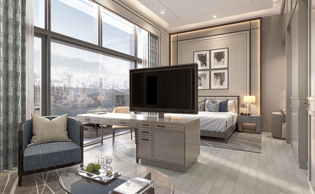 تتميز الغرف الواسعة بديكور أنيق، وتضم نوافذ تمتد من الأرضية وحتى السقف مع إطلالات على المدينة أو المرفأ، وتوفر جميع الغرف تلفزيون مع قنوات فضائية ومكتب كبير للعمل وآلة لصنع الشاي/القهوة.