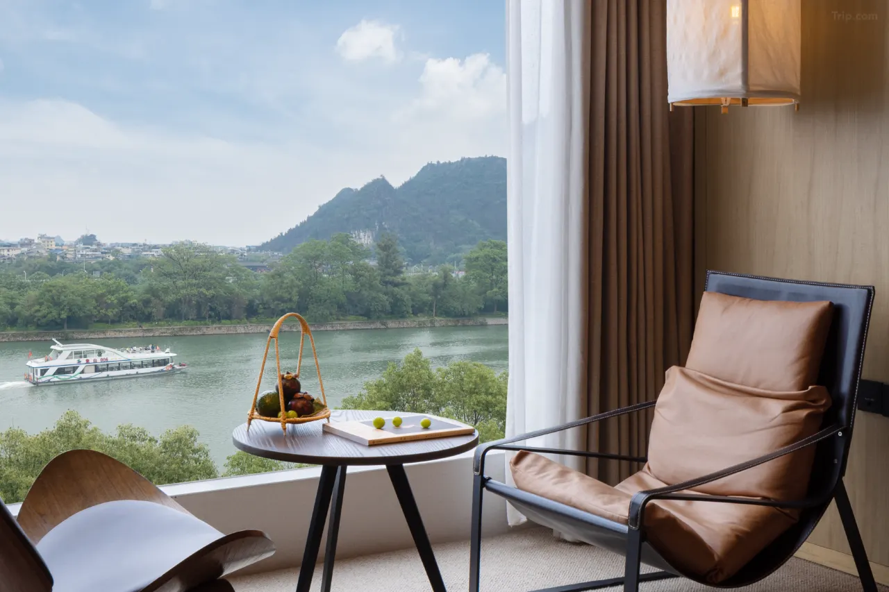 يقع الفندق في شارع آنشين الجنوبي بمدينة غويلين، مُطلًا مباشرةً على نهر ليجيانغ، ويتميز بإطلالة بانورامية بزاوية 270 درجة. وبجوار تل خرطوم الفيل، رمز المدينة، يُشرف الفندق على جبال غويلين الشهيرة “تشوانشان” و”تاشان”