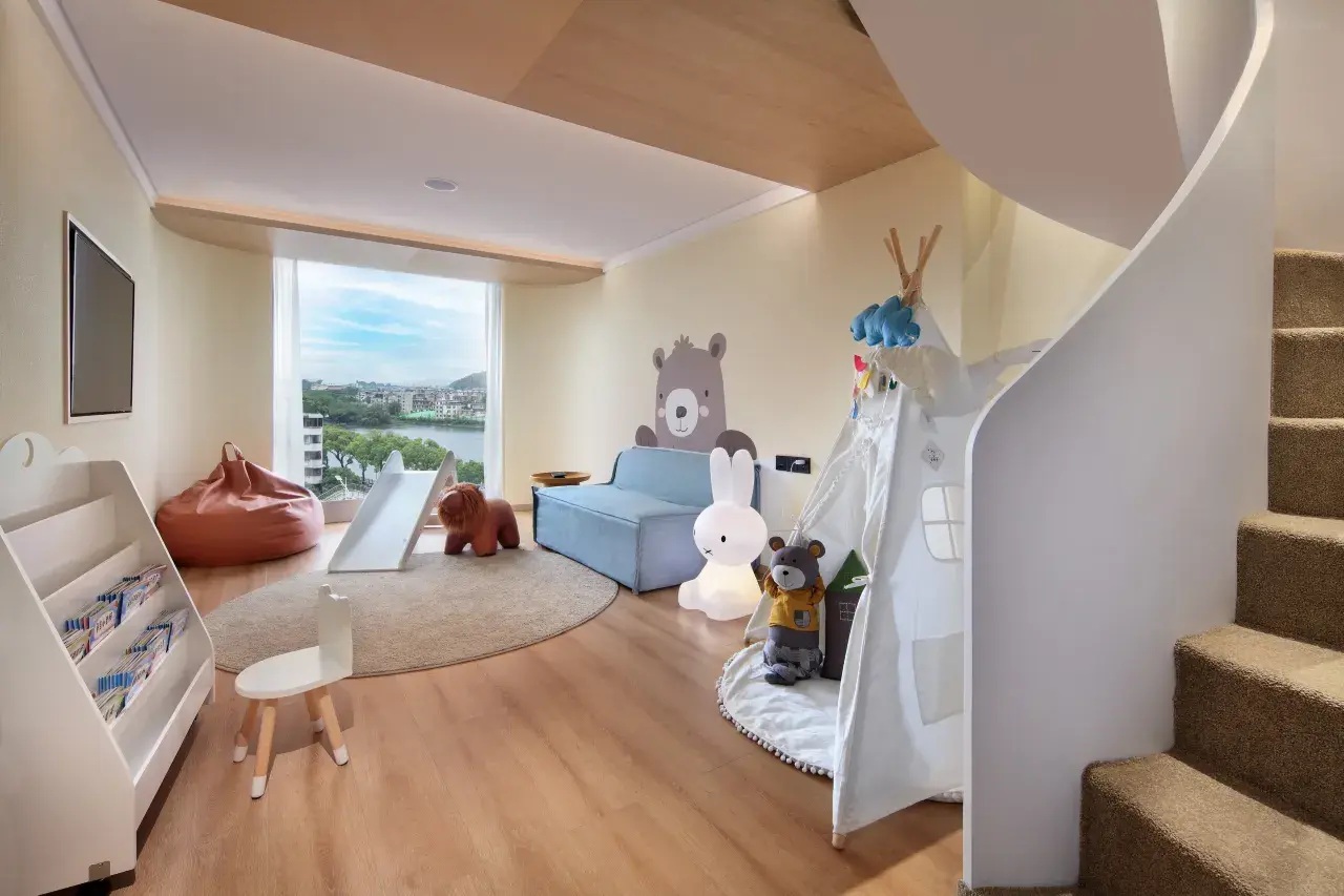عبر النهر، مع جسر ليجيانغ الممتد شرقًا كشريط. يقع الفندق في قلب المدينة على ضفاف نهر ليجيانغ، ويبعد 10-15 دقيقة فقط بالسيارة عن محطة قطار غويلين/حي فينتيان التجاري، ومنطقة تل خرطوم الفيل/منطقة النهرين والبحيرات الأربع ذات المناظر الخلابة، ومركز المؤتمرات والمعارض الدولي، ومنطقة واندا التجارية للتكنولوجيا المتقدمة، وحوالي 45 دقيقة بالسيارة عن مطار ليانغجيانغ الدولي. [مفهوم التصميم] من تصميم زو جيا، المدير التنفيذي لجمعية تصميم الفنادق، والحائز على درجة الماجستير من جامعة بوليتكنيكو دي ميلانو بإيطاليا، وأحد أفضل 100 مصمم متميز في الصين. جوهر العمارة البيزنطية الإيطالية والطابع الكلاسيكي للبساطة الصينية يتيحان لك الشعور بالدفء والراحة دون إفراط، وتجربة إحساس بالحرية والسكينة. صغير لكنه جميل؛ راقٍ لكنه فاخر
