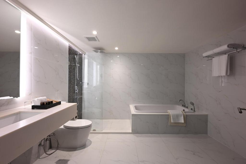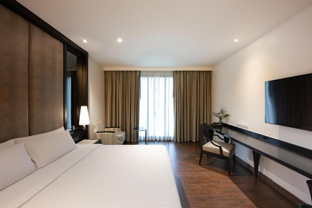 جميع الغرف والأجنحة العصرية الأنيقة مكيفة الهواء، وتضم تلفزيون بشاشة مسطحة LED، ومكتب عمل كبير، وثلاجة صغيرة. كما يتوفر خزنة داخل الغرفة لمزيد من الأمان. يحتوي الحمام الخاص على حوض استحمام أو دش، بالإضافة إلى أردية حمام، ونعال، ومجفف شعر.