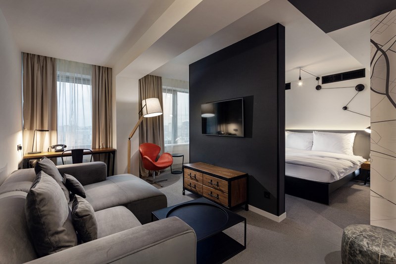 Penta Suite is a two-room suite with a living room and a bedroom