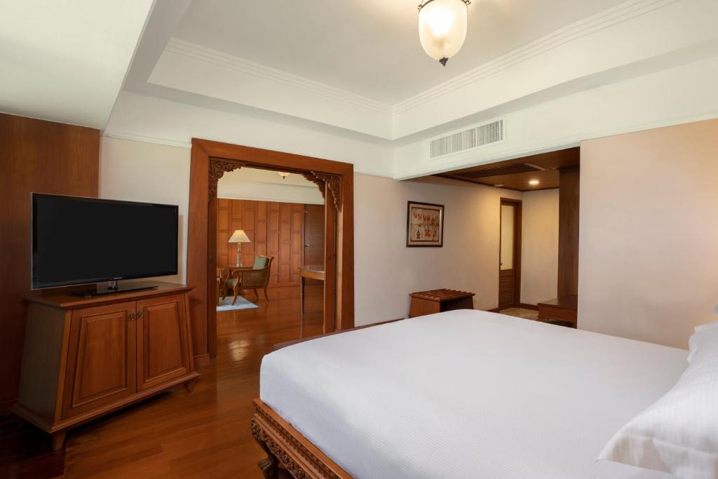 تتميز جميع الغرف الفسيحة بشرفة خاصة تُطل على مناظر خلابة لبحر أندامان، أو الحدائق الاستوائية، أو بحيرة اللوتس. وتحتوي غرف الضيوف على مكتب عمل واسع، وأريكة مريحة، وثلاجة صغيرة، وخزنة. كما تضم تلفزيون بشاشة مسطحة، وحمامًا أنيقًا مزودًا بدُش منفصل وحوض استحمام.