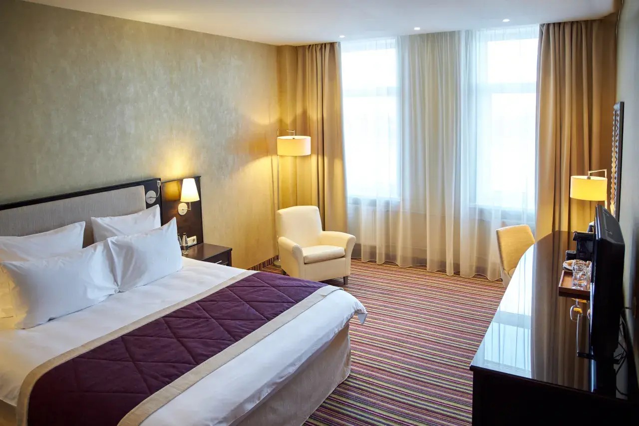 يتيح لك الإقامة في فندق ريفر بالاس التمتع بموقعٍ مميز في قلب مدينة سانت بطرسبرغ، حيث يقع على بُعد 5 دقائق بالسيارة من أكاديمية سانت بطرسبرغ للفنون الجميلة ومتحف كونستكاميرا. كما يبعد الفندق مسافة 1.9 كم عن متحف إرارتا ومعارض الفن المعاصر، و2 كم عن جسر القصر.تفضل بزيارة مطعم الفندق، ريفر، لتناول الغداء أو العشاء، أو تناول وجبة خفيفة في المقهى. اختتم يومك بمشروب في البار/الردهة. يُقدم بوفيه إفطار مجاني خلال أيام الأسبوع من الساعة 7:30 صباحًا حتى 10:30 صباحًا.تشمل المرافق المميزة مركز أعمال يعمل على مدار الساعة، وخدمات التنظيف الجاف/غسيل الملابس، ومكتب استقبال يعمل على مدار الساعة. هل تخطط لإقامة فعالية في سانت بطرسبرغ؟ يوفر هذا الفندق مساحة 183 مترًا مربعًا (1964 قدمًا مربعًا) تضم قاعة مؤتمرات و8 غرف اجتماعات. تتوفر خدمة نقل مكوكية من وإلى المطار مقابل رسوم إضافية (متوفرة على مدار الساعة)، كما يتوفر موقف سيارات ذاتي (برسوم) في الموقع.استمتع بإقامة مريحة في إحدى غرف الضيوف البالغ عددها 214 غرفة، والمجهزة بميني بار وتلفزيونات بشاشات مسطحة. تتوفر خدمة الإنترنت اللاسلكي المجانية لتبقى على اتصال، بالإضافة إلى قنوات الكابل التلفزيونية لتستمتع بوقتك. تحتوي الحمامات الخاصة على لوازم استحمام مجانية ومجففات شعر. وتشمل وسائل الراحة الأخرى هواتف، وخزائن، ومكاتب.