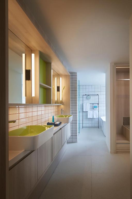 مرافق مميزة: يضم الفندق مركزًا للياقة البدنية ومسبحًا داخليًا وتراسًا شمسيًا وحديقة غنّاء. كما يضم مطعمًا يقدم مأكولات عالمية ومقهى وملعبًا للأطفال.