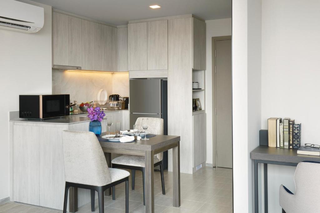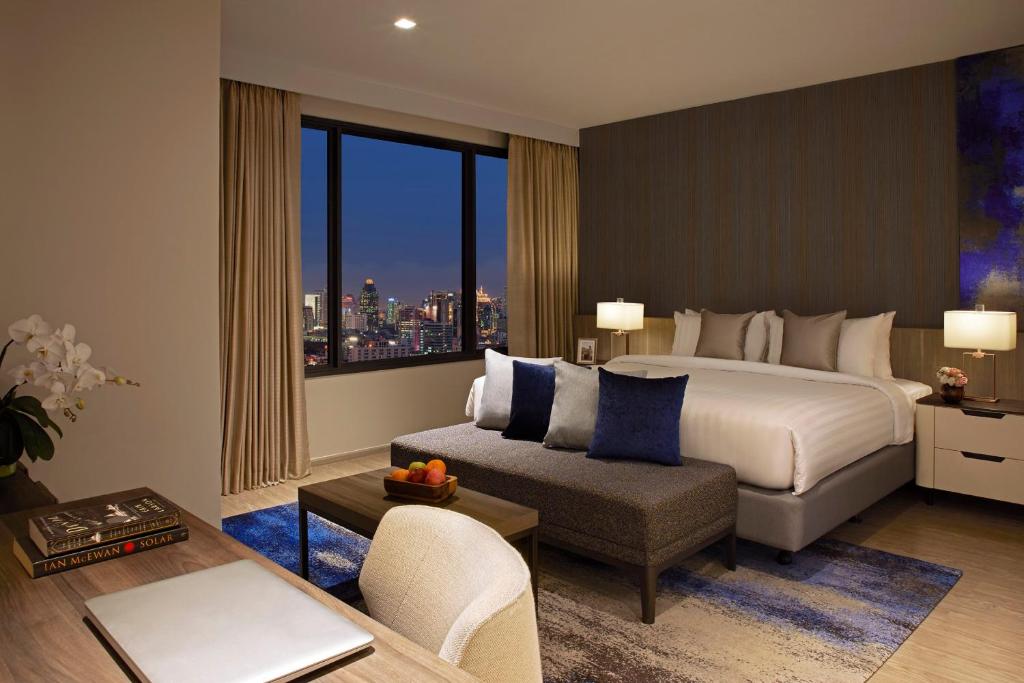 إقامة أنيقة: يوفر فندق سومرست راما 9 بانكوك في بانكوك غرفًا فاخرة مع حمامات خاصة، وإطلالات على المدينة، ووسائل راحة عصرية. تحتوي كل غرفة على مكتب عمل، وخدمة واي فاي مجانية، ومنطقة جلوس مريحة.