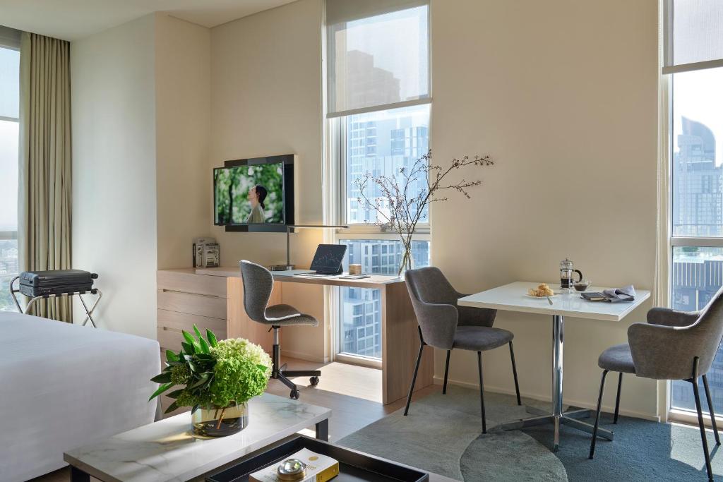 يقع فندق سومرست سوخومفيت ثونغلور بانكوك في شارع ثونغلور، ويضم غرفًا مزودة بمطابخ صغيرة مجهزة بالكامل. تشمل المرافق مسبحًا خارجيًا ومركزًا للياقة البدنية وموقف سيارات مجاني.