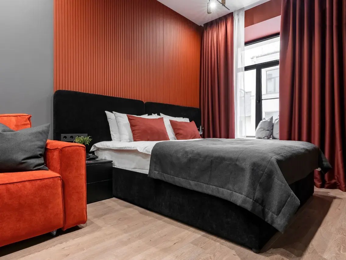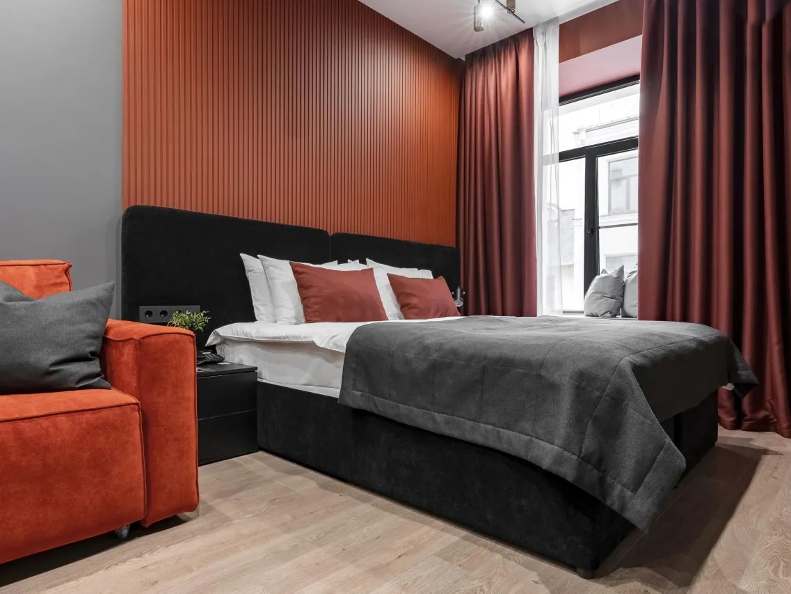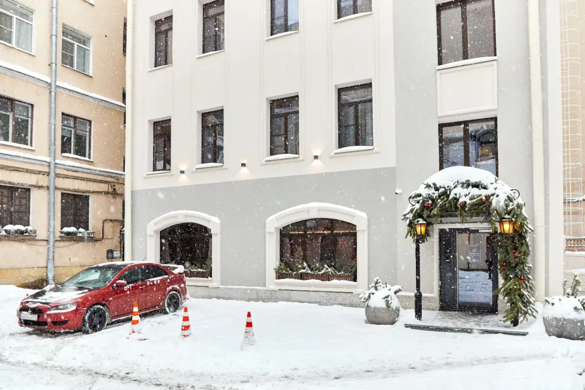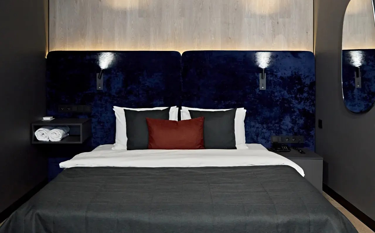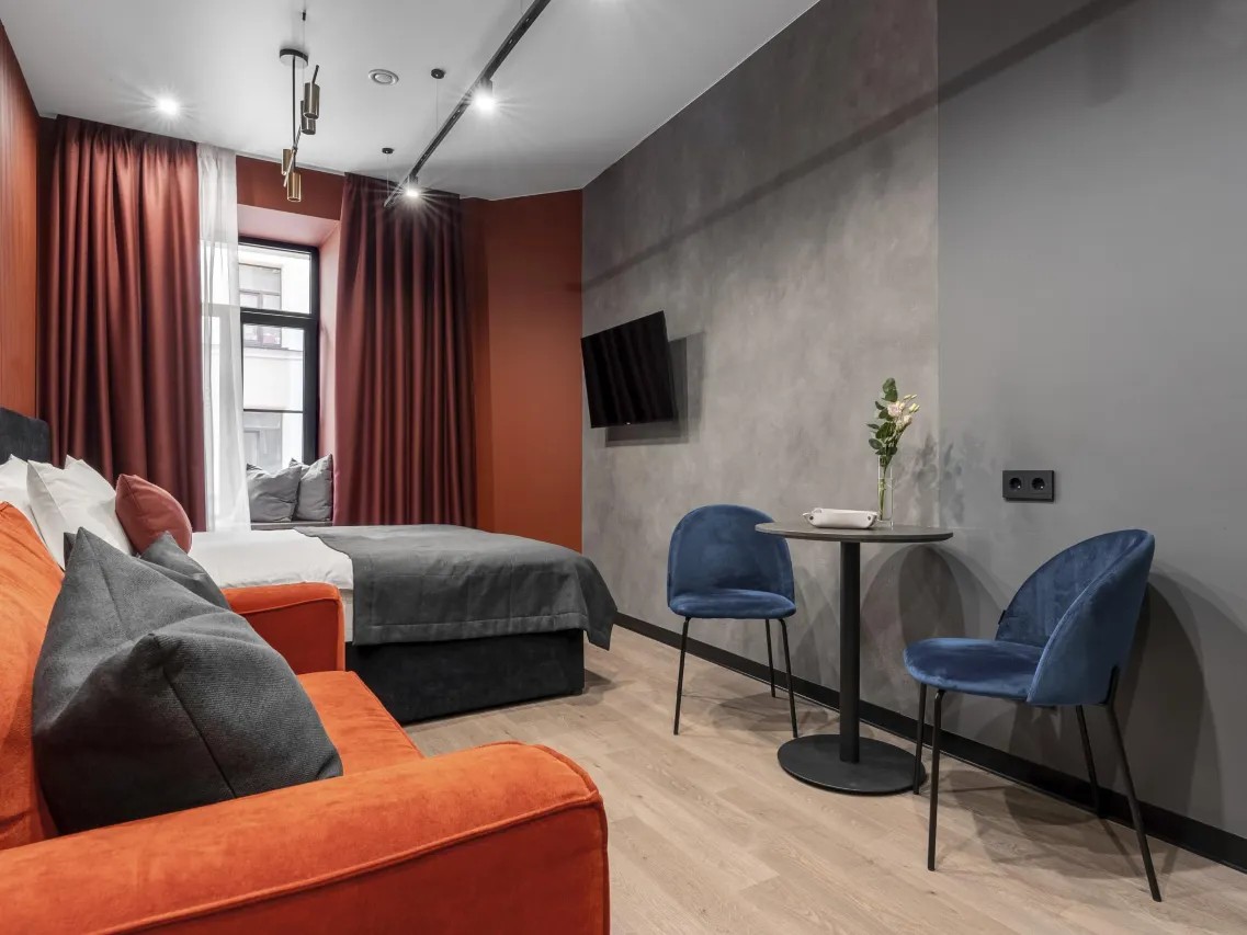 مشروع فندقي عصري يجمع بين التصميم الأنيق والراحة، يقع في قلب مدينة سانت بطرسبرغ على شارع نيفسكي بروسبكت، وفي الوقت نفسه في فناء هادئ ودافئ، يتيح لك الاسترخاء بعيدًا عن صخب المدينة ليلًا. تتميز ديكورات الفندق الداخلية بتدرجات اللون الرمادي والأحمر.