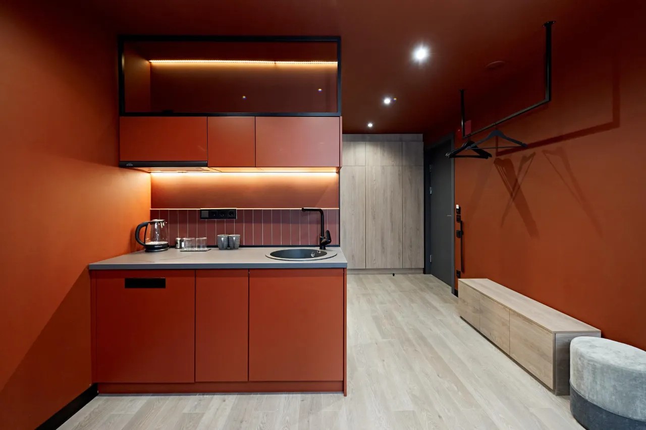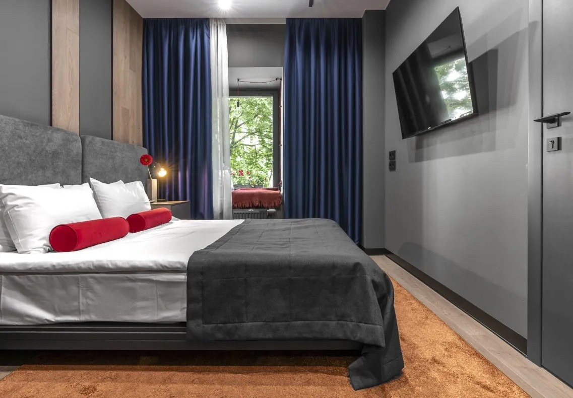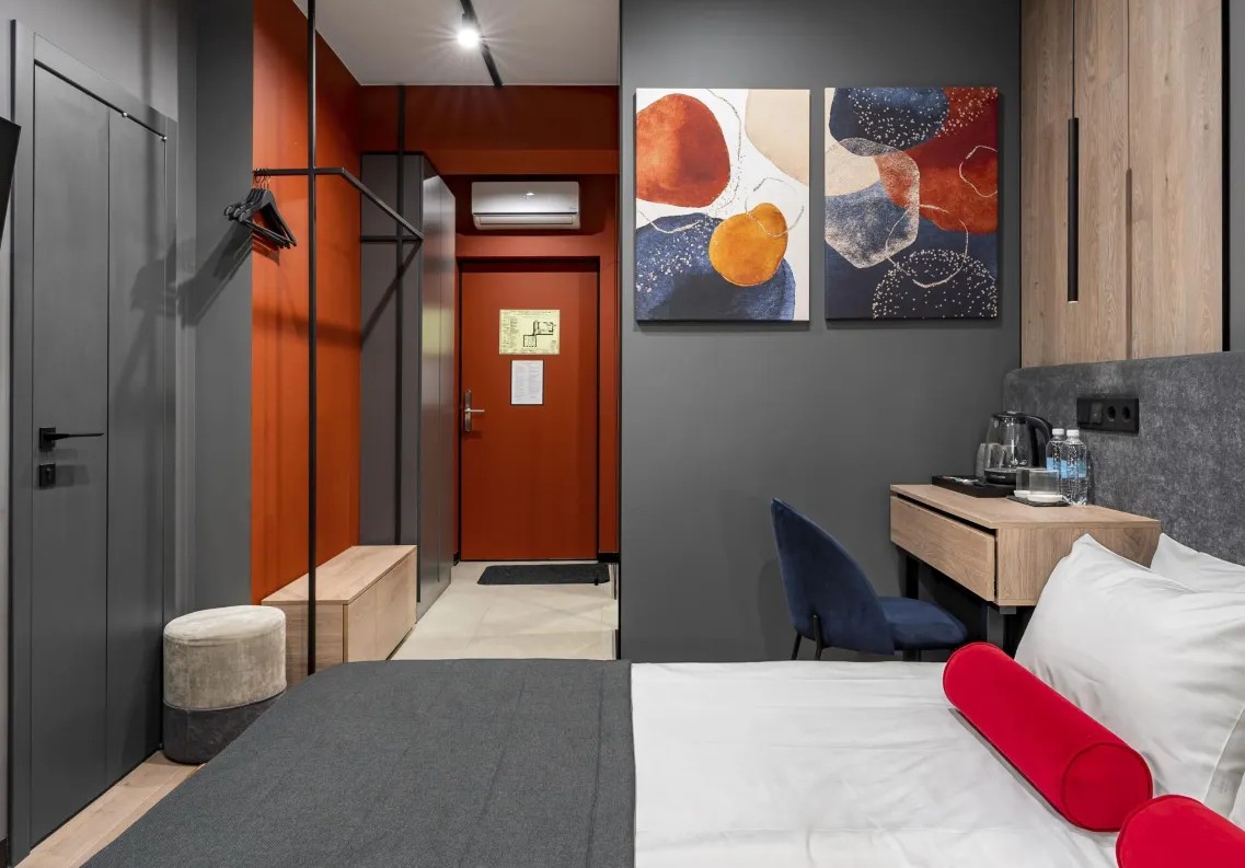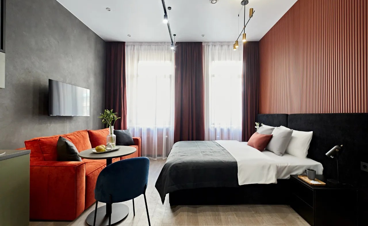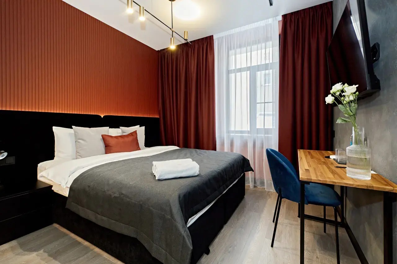 مشروع فندقي عصري يجمع بين التصميم الأنيق والراحة، يقع في قلب مدينة سانت بطرسبرغ على شارع نيفسكي بروسبكت، وفي الوقت نفسه في فناء هادئ ودافئ، يتيح لك الاسترخاء بعيدًا عن صخب المدينة ليلًا. تتميز ديكورات الفندق الداخلية بتدرجات اللون الرمادي والأحمر.