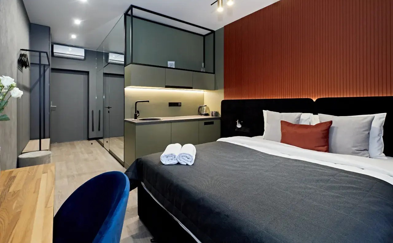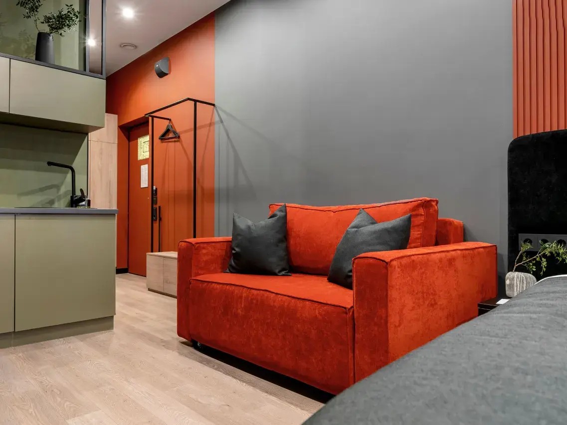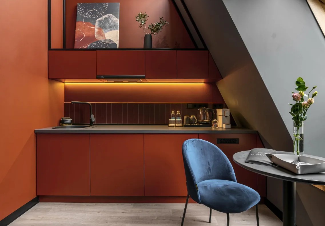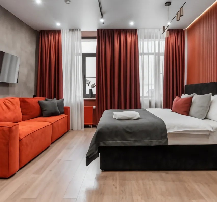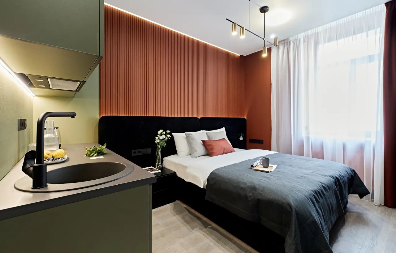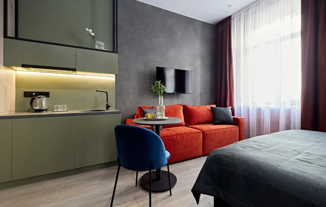 مشروع فندقي عصري يجمع بين التصميم الأنيق والراحة، يقع في قلب مدينة سانت بطرسبرغ على شارع نيفسكي بروسبكت، وفي الوقت نفسه في فناء هادئ ودافئ، يتيح لك الاسترخاء بعيدًا عن صخب المدينة ليلًا. تتميز ديكورات الفندق الداخلية بتدرجات اللون الرمادي والأحمر.