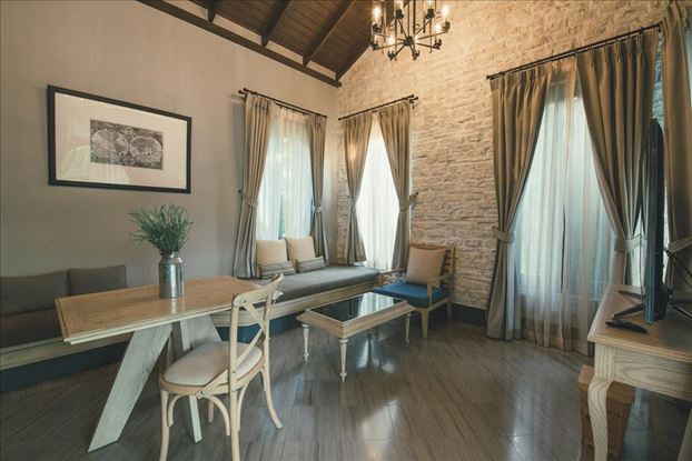 تتميز كل وحدة بشرفة خاصة مطلة على الحديقة، وهي مجهزة بتكييف هواء، ومنطقة جلوس مزودة بأريكة، وتلفزيون بشاشة مسطحة مع قنوات الكابل. كما تحتوي على غلاية كهربائية وثلاجة وميني بار. وتضم الحمامات الخاصة دشًا ومجفف شعر ورداء حمام.