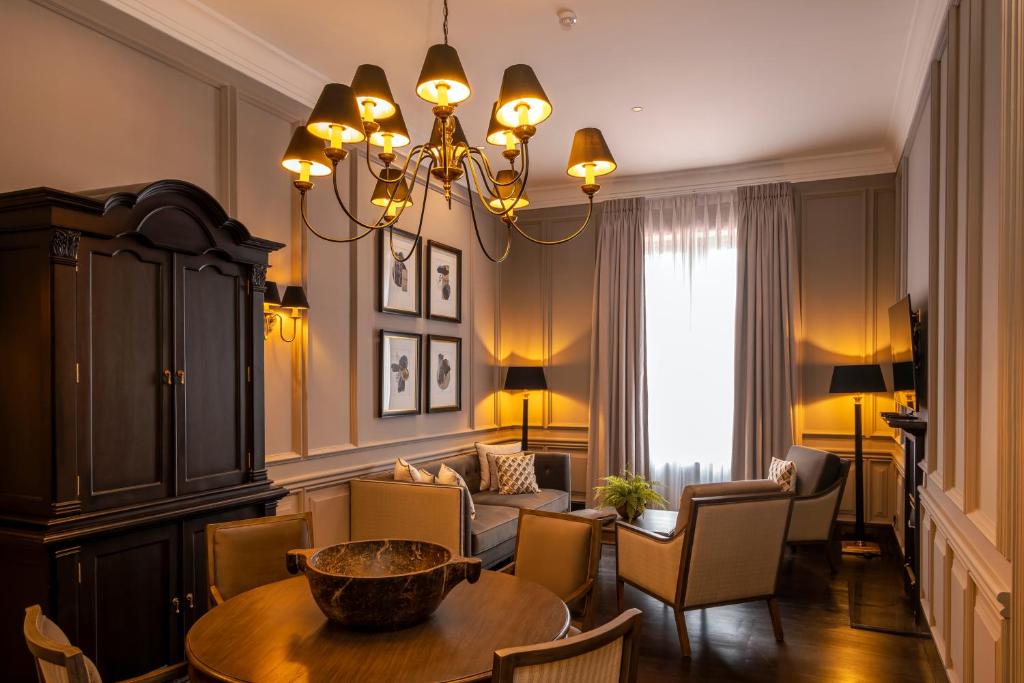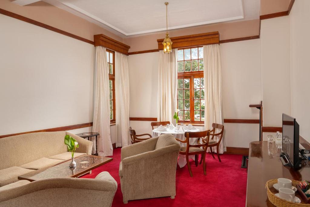 يقدم مطعم بارنز هول أطباقًا عالمية، بينما يقدم مطعم جراند إنديان أطباقًا مميزة من شمال وجنوب الهند. كما يضم الفندق قبوًا للنبيذ.